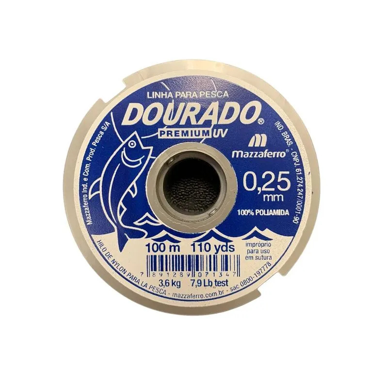 Linha para Pesca Dourado Monofilamento Premium UV Mazzaferro 0,25mm Carretel com 100 Metros
